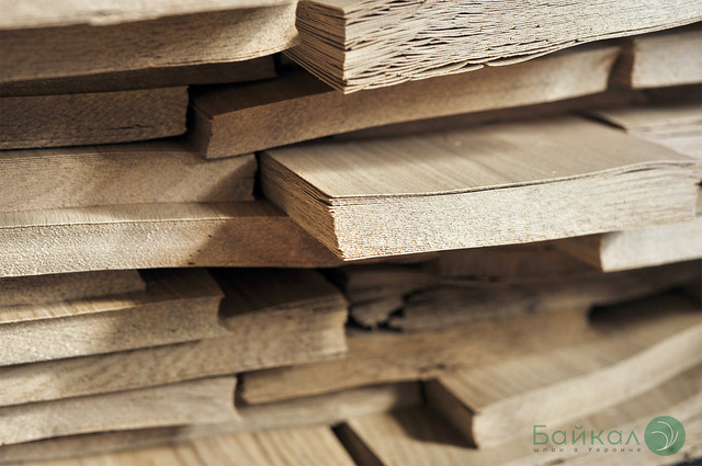 Лущеный шпон – тонкие листы древесины преимущественно из дуба, сосны, березы и ольхи. Производится путем срезания листов вкруговую (по спирали) с полена на аппарате цилиндрической заготовки.