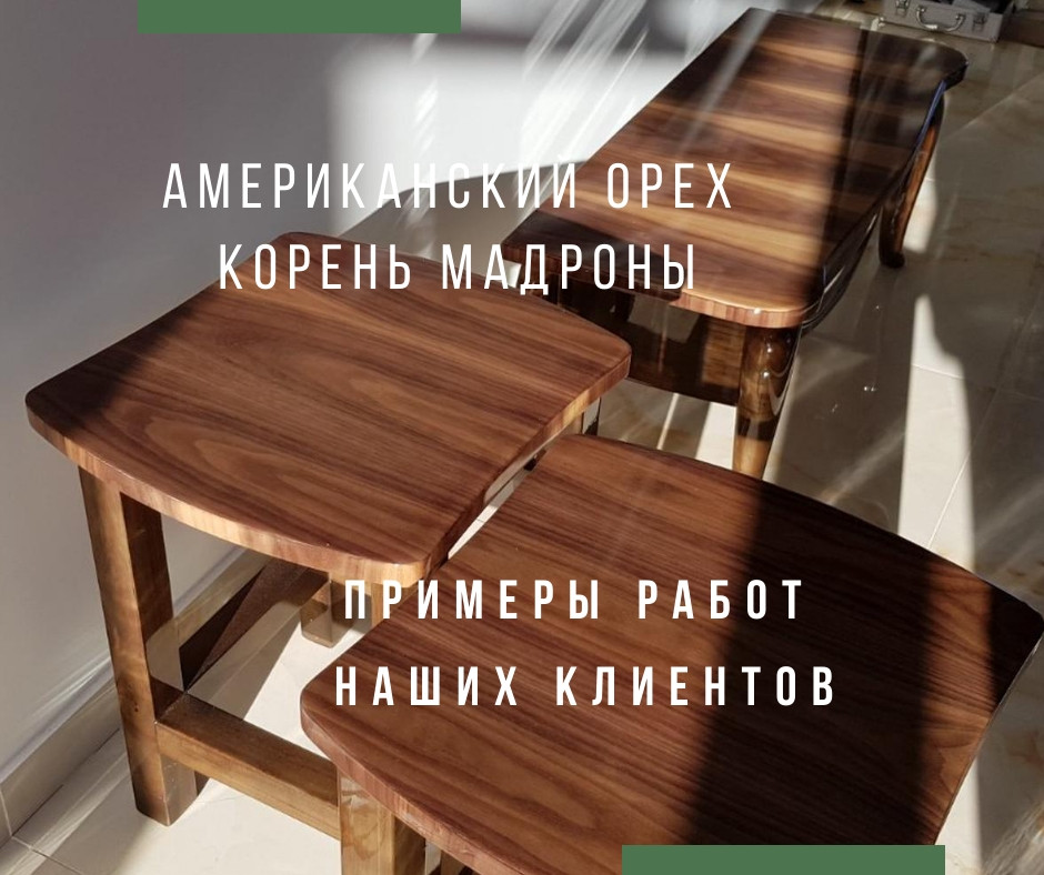 Михайло займається виготовленням меблів під замовлення та працює виключно з натуральними матеріалами. Нещодавно він придбав у нас струганий шпон Горіха Американського і корінь Мадроны. І подивіться, яка прекрасні меблі у нього вийшла.