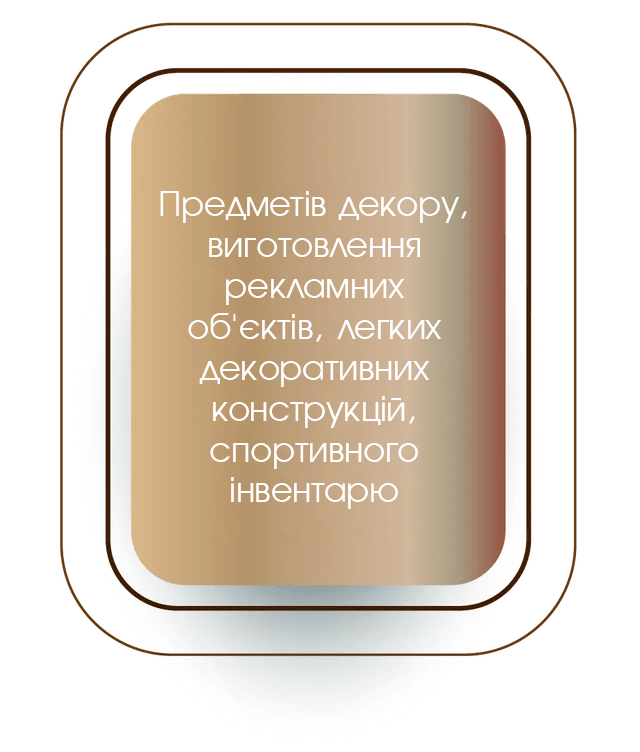 | Призначення | Будівництво, Оформлення інтер'єру, Виробництво меблів, Пакувальне виробництво |